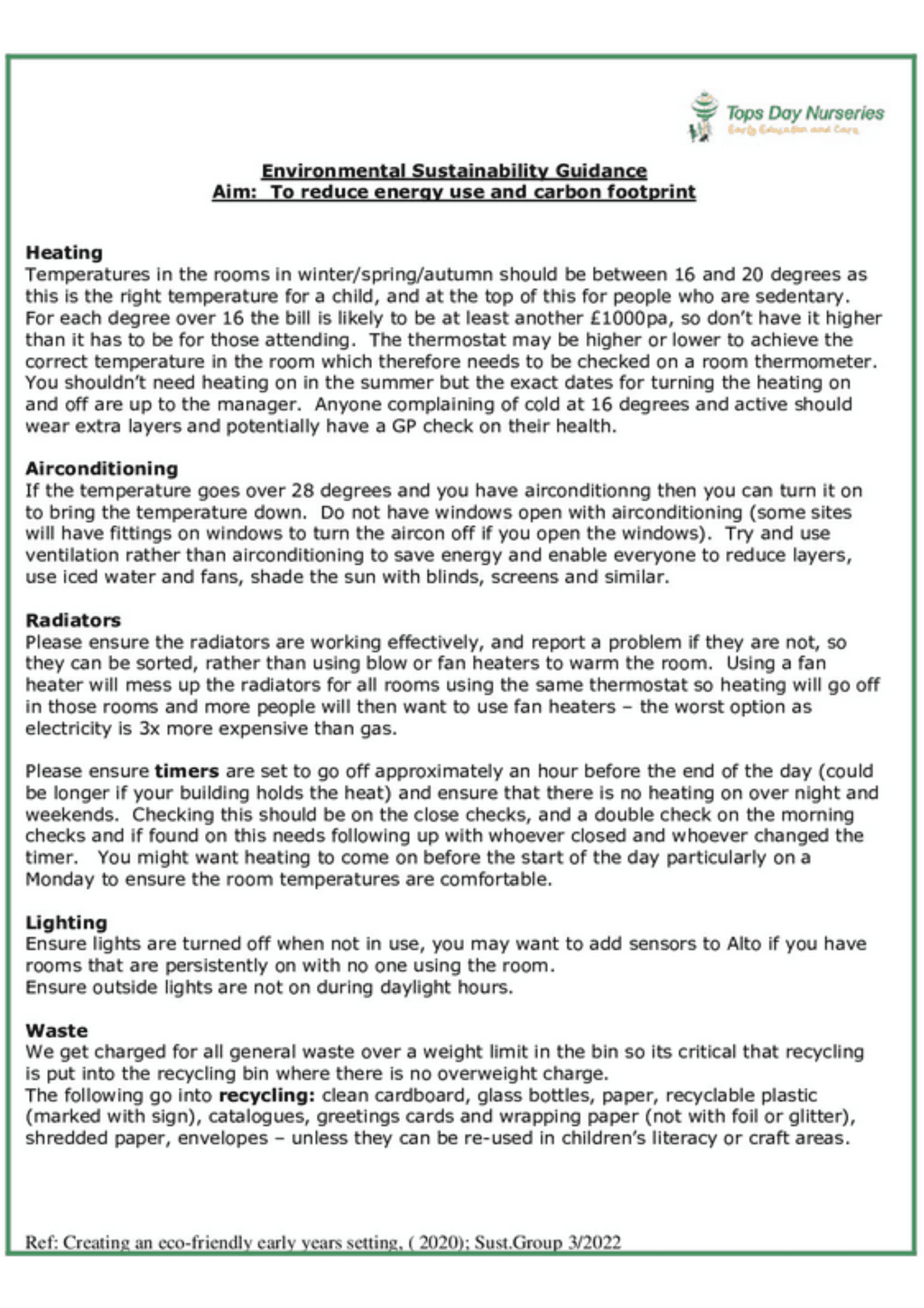There’s advice and ideas for adapting your day-to-day decisions and activities. Tips on making more sustainable choices when purchasing anything from vehicles to furniture, from cleaning materials to children’s toys. We publish research of interest, and articles on how plastic and air pollution, climate change and biodiversity are all things we can address in a childcare setting, for today’s children, todays’ nursery staff, and for those in the future. We must take action now and no action is too small.